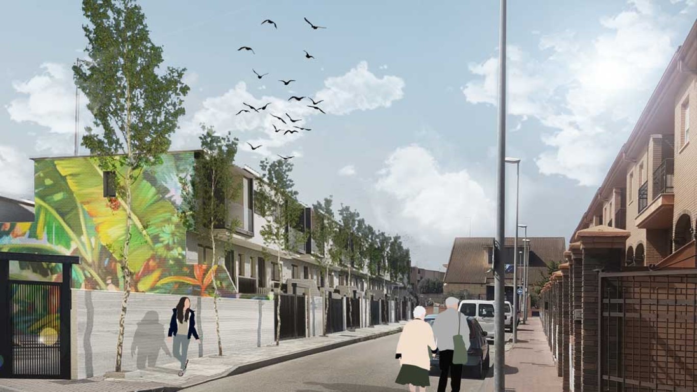 La entrada a la vivienda se realiza a través de un espacio exterior, que conecta el nivel de la rasante con el de planta baja, situada a 1’50 m sobre la misma. Existe una entrada directa desde la vía pública para vehículos al garaje.