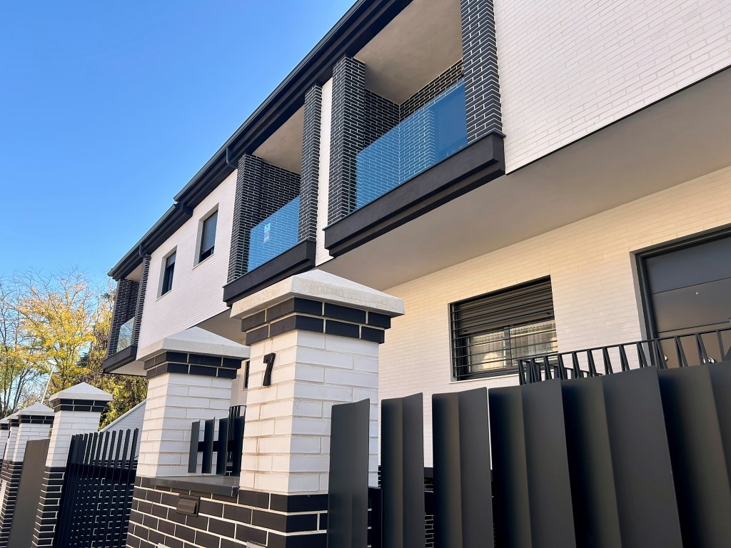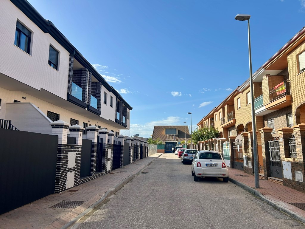 La entrada a la vivienda se realiza, al igual que en las demás, a través de un espacio exterior, que conecta el nivel de la rasante con el de planta baja. En este caso, sin embargo, la entrada al garaje se encuentra en el extremo opuesto de la fachada, a una cota diferente a la del acceso principal.