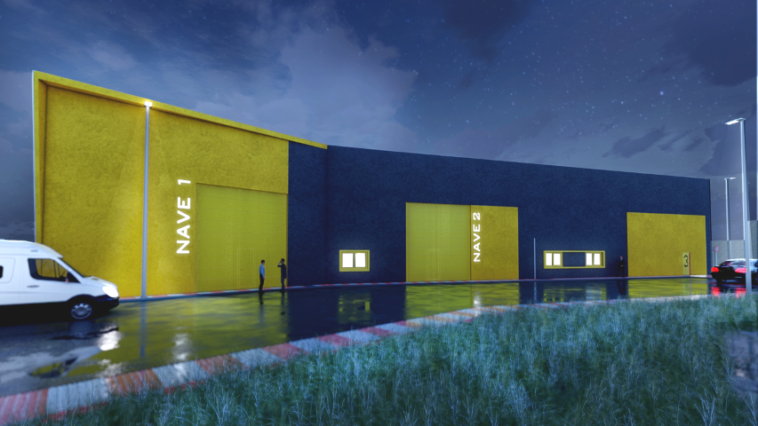 Ambas naves comparten estructura común ya que la estructura es a base pórtico metálicos tipo IPE200 sobre cimentación de hormigón armado(zapatas), la cubierta de panel sandwich de 3cm. apoyadas sobre correas ZF 180×2.5. Los cerramientos serán de paneles de hormigón prefabricados, la carpintería exterior será metálica y la interior de aluminio.