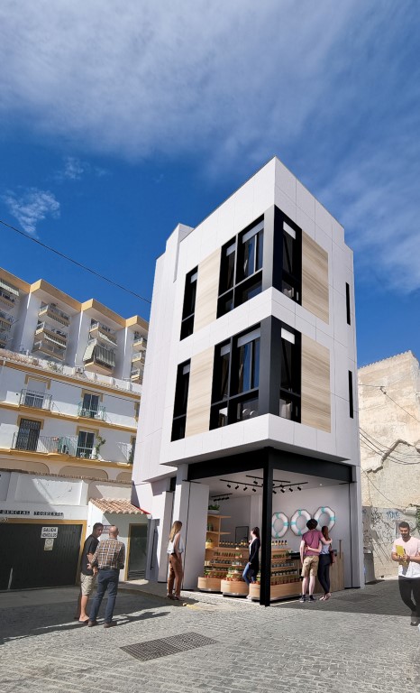 El proyecto plantea un edificio plurifamiliar de 25 viviendas, ubicado en un enclave natural privilegiado, enmarcado por el río Guadalbullón, el arroyo Torrebermeja, y el Camino del Molino Viejo. La propuesta se materializa en un volumen blanco puro, que emerge de la naturaleza como una pieza serena, en diálogo con el paisaje circundante, ofreciendo vistas privilegiadas hacia Sierra Mágina y el castillo de La Guardia de Jaén.