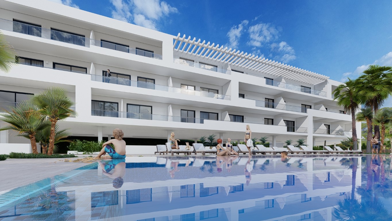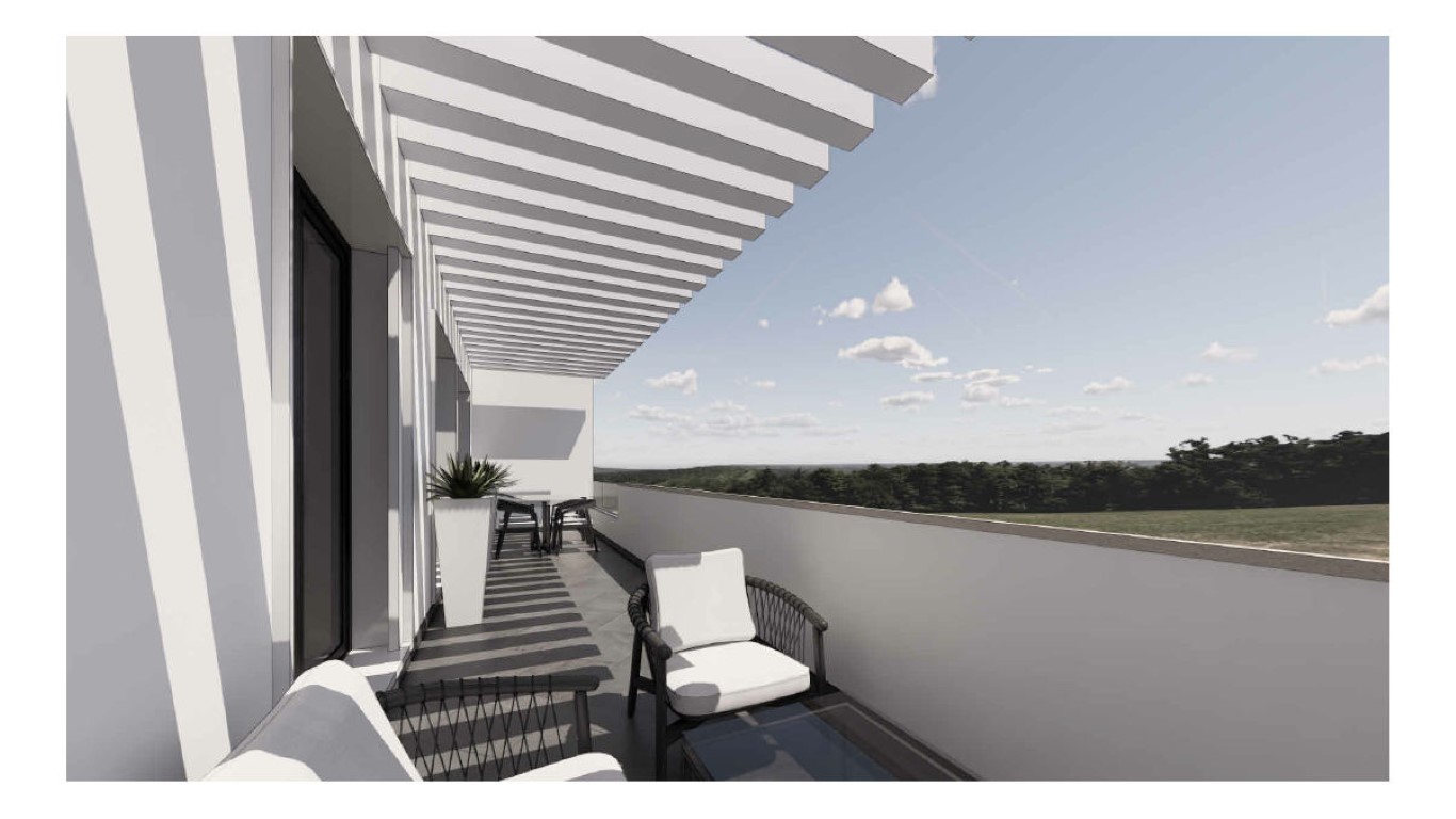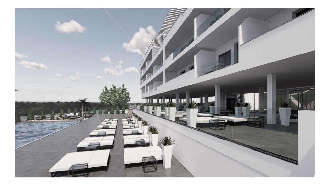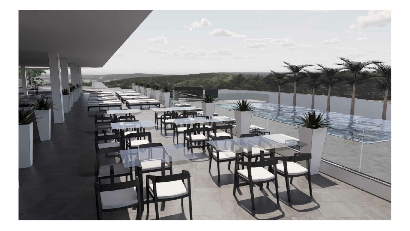 Para aprovechar las privilegiadas vistas hacia el sureste, el diseño introduce terrazas exclusivas y privadas para cada apartamento, concebidas como extensiones exteriores que borran los límites entre interior y exterior. Además, se proyecta una piscina infinity y un lounge bar privado que actúan como elementos vertebradores del ocio comunitario, complementados con una piscina cubierta climatizada con vistas a la sierra, dos terrazas a doble altura y una zona de solárium. Estos espacios de agua y descanso, cuidadosamente orientados, capturan la luz solar desde primeras horas de la mañana, evitando generar sombras indeseadas sobre las áreas recreativas.