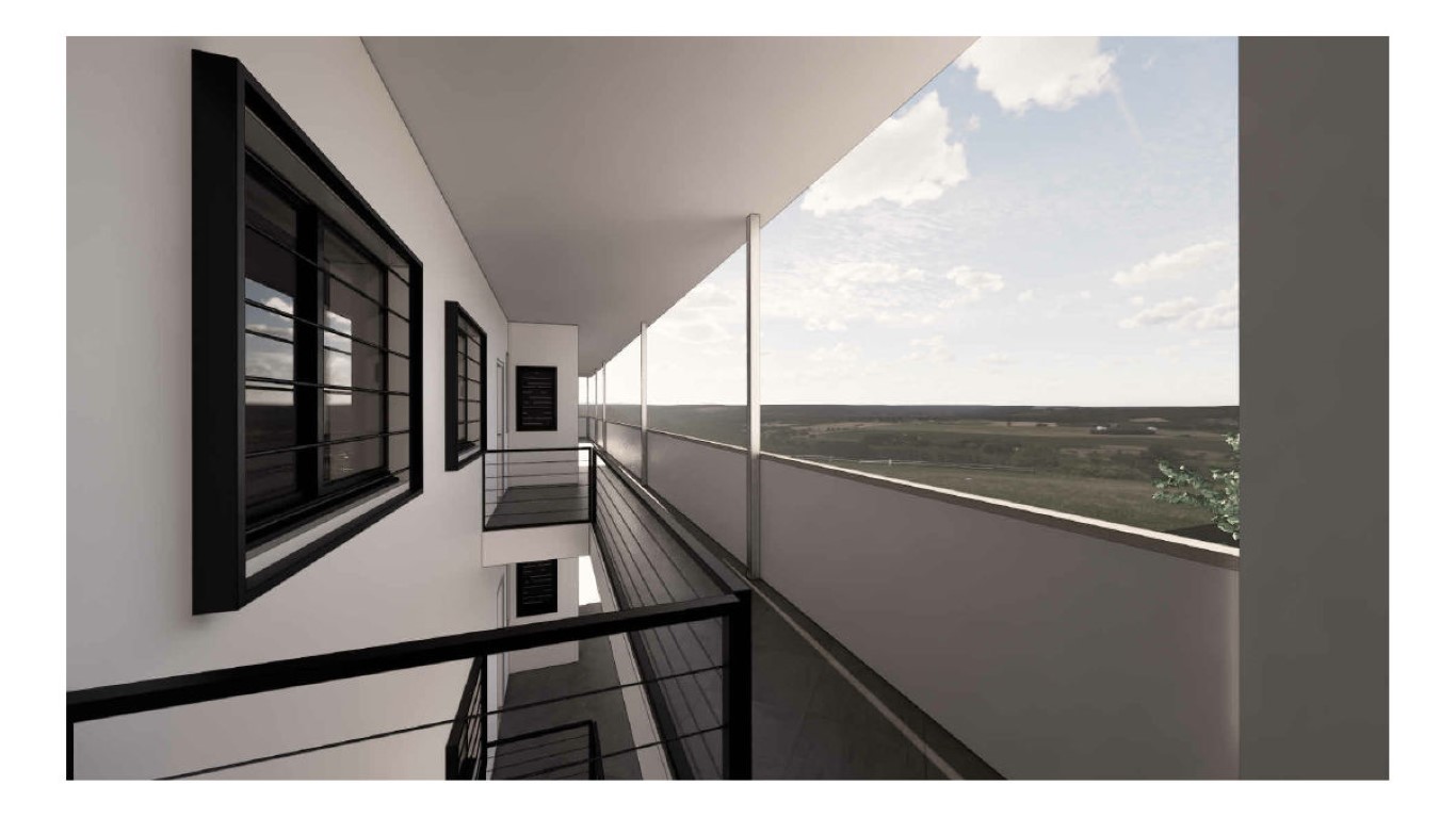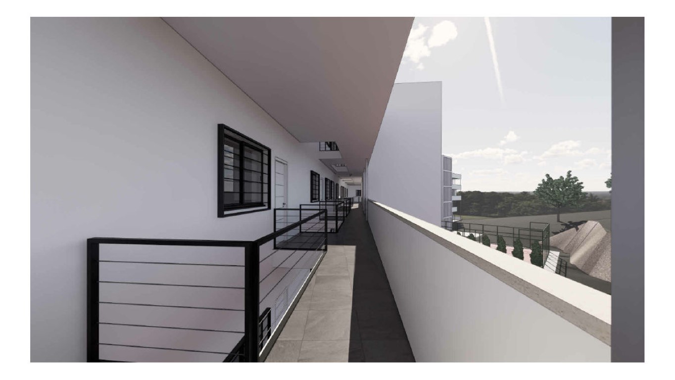 El edificio se organiza mediante un esquema de crujía única, optimizando su disposición para garantizar que todos los apartamentos estén orientados al sureste, donde se encuentran las mejores vistas. Esta orientación no solo maximiza la entrada de luz natural y la calidad del confort térmico, sino que permite contemplar paisajes emblemáticos como el castillo de La Guardia de Jaén, el castillo de Santa Catalina, la sierra y el río Guadalbullón. La fachada opuesta, con una orientación menos favorable, se destina a una galería exterior que facilita la distribución y refuerza la privacidad de las estancias principales.