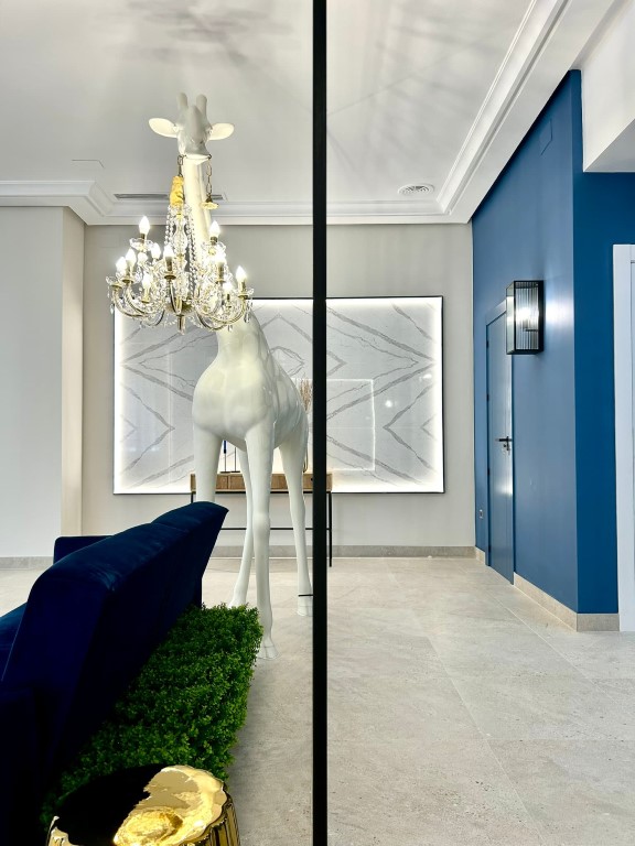 La influencia del estilo art decó se entrelaza con la modernidad, expresándose en líneas geométricas puras y detalles ornamentales que equilibran sobriedad y lujo. Los tonos blancos y azules crean un diálogo entre la calma y la profundidad, evocando cielos despejados y horizontes infinitos, mientras los acentos dorados rememoran el esplendor de los años dorados del hotel, recordando la importancia de cada instante único que aquí se vive.
