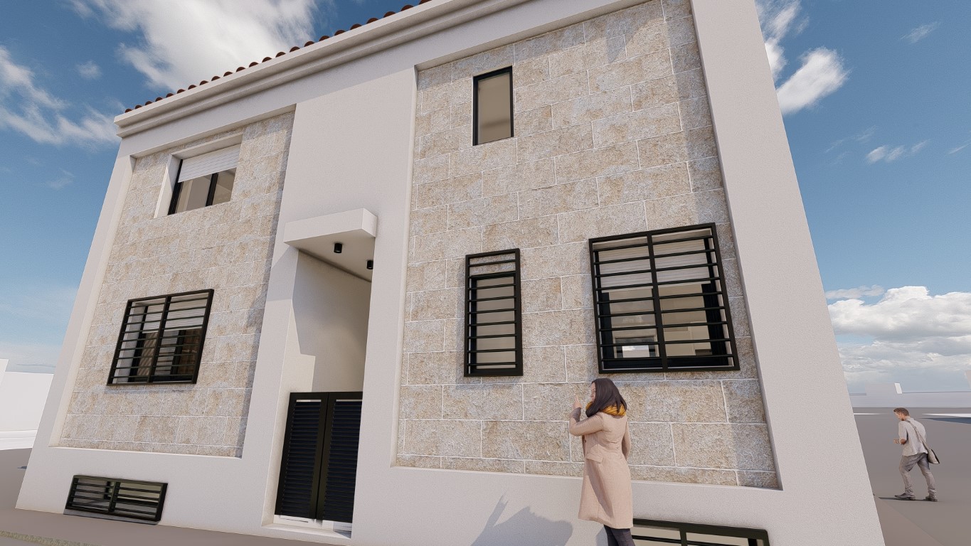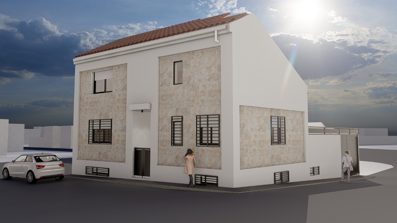 El acceso a la edificación se encuentra oculto, enfatizándose así el volumen de la escalera desde el exterior, como centro de la fachada. Las zonas diurnas y nocturnas se separan horizontalmente a través de la mencionada escalera y comunicación vertical, situándose las actividades diurnas en planta baja y nocturna en planta alta.