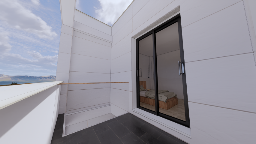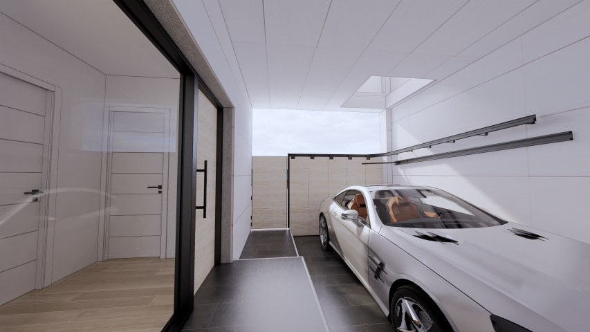 El proyecto respeta las alineaciones y volumetrías dictadas por la normativa municipal, resolviendo el acceso a través de un porche que, además de dar la bienvenida, cumple la función de garaje. La vivienda se concibe como un volumen rotundo, compacto y minimalista, donde la blancura de su envolvente dialoga con pequeñas perforaciones estratégicas que permiten la entrada de luz natural. Estas aberturas iluminan un patio delantero cubierto y una terraza, ambos conectados y discretamente ocultos tras una fachada que actúa como un filtro visual.