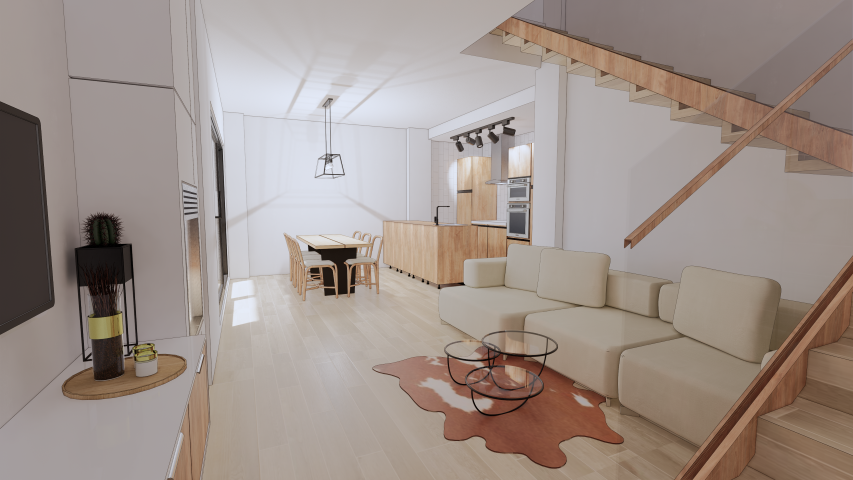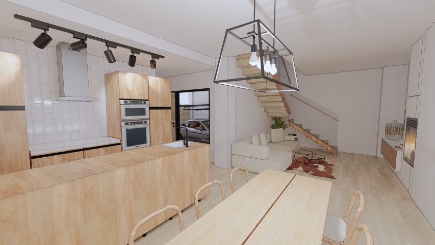 Esta vivienda unifamiliar, ubicada en el municipio de Bailén, se presenta como un desafío arquitectónico debido a su localización entre medianeras y la limitación de una parcela reducida, significativamente más pequeña que las del entorno. Este condicionante nos planteó el reto de diseñar un espacio eficiente y funcional, capaz de integrar el programa requerido de forma óptima para una pareja joven, maximizando cada metro cuadrado disponible.