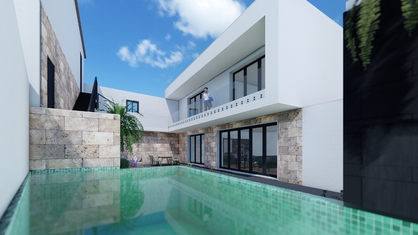 La fachada, con ligeros ajustes en la disposición de huecos, respeta las proporciones, materialidad y tonalidades de la arquitectura original, manteniendo el diálogo con el entorno. Mientras el exterior se rige por los ritmos propios de la arquitectura tradicional, el interior adopta un lenguaje contemporáneo que gira en torno al verdadero protagonista del proyecto: el patio central. Este espacio articula y da vida al interior de la vivienda, generando un contraste enriquecedor entre la memoria histórica del exterior y la modernidad del diseño interior.