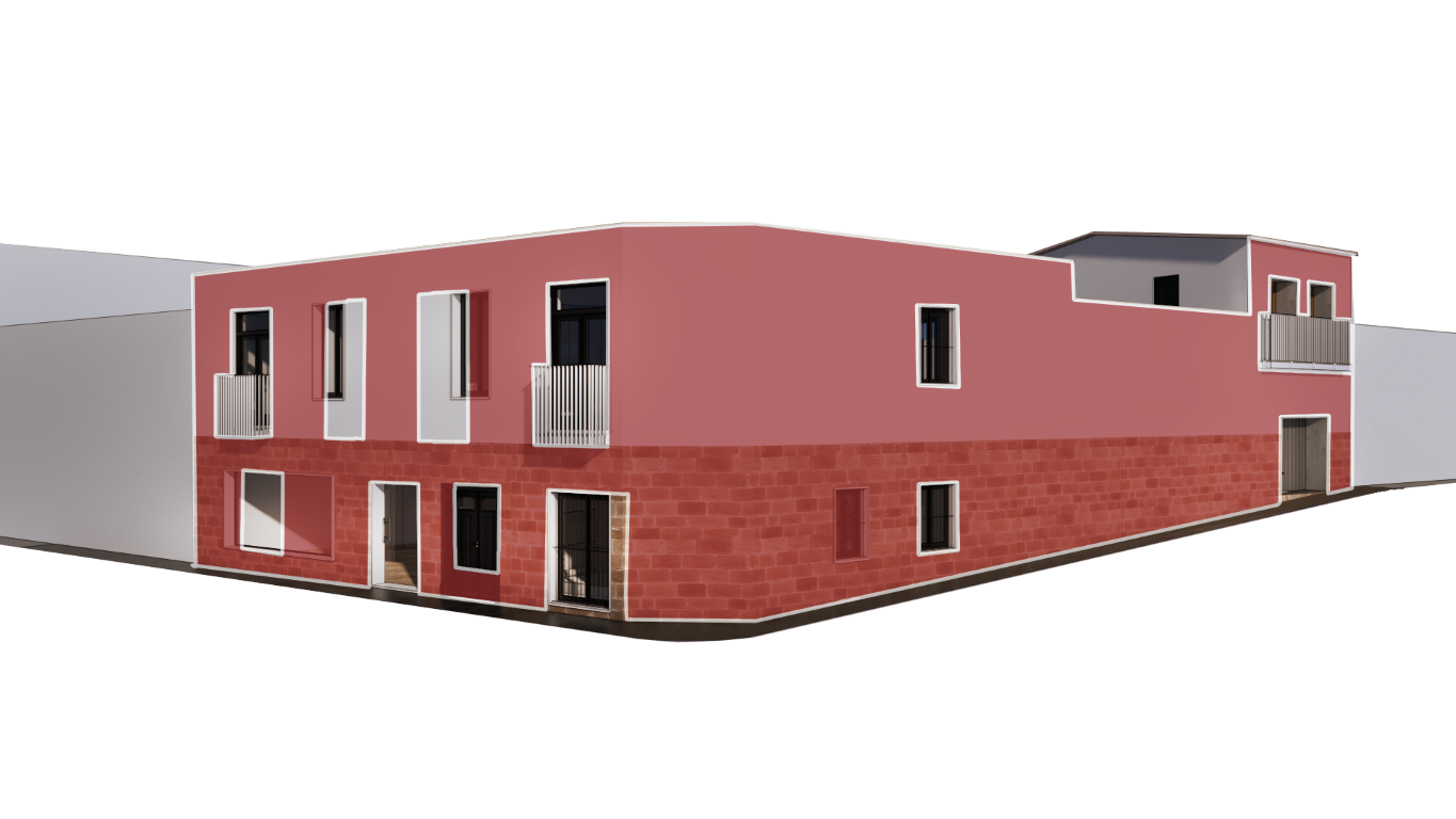 Nos trasladamos al casco histórico de Bailén, un enclave consolidado por viviendas populares y tradicionales, donde los aleros, herrajes, madera y piedra evocan un paisaje arquitectónico congelado en el tiempo. El edificio original, muy deteriorado y sin posibilidad de adaptación, requirió una demolición completa, conservando únicamente la fachada principal y el volumen exento trasero. Esta intervención permitió construir un nuevo volumen interno, preservando la identidad, esencia y huella histórica del inmueble.