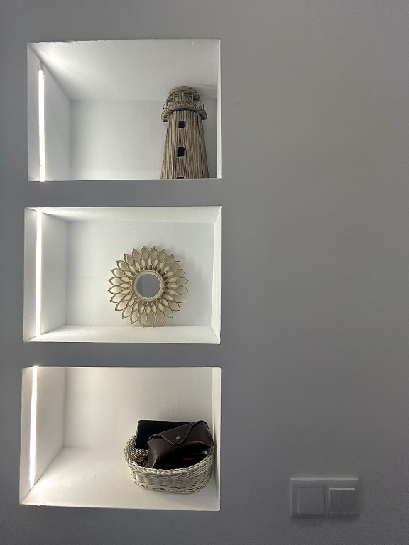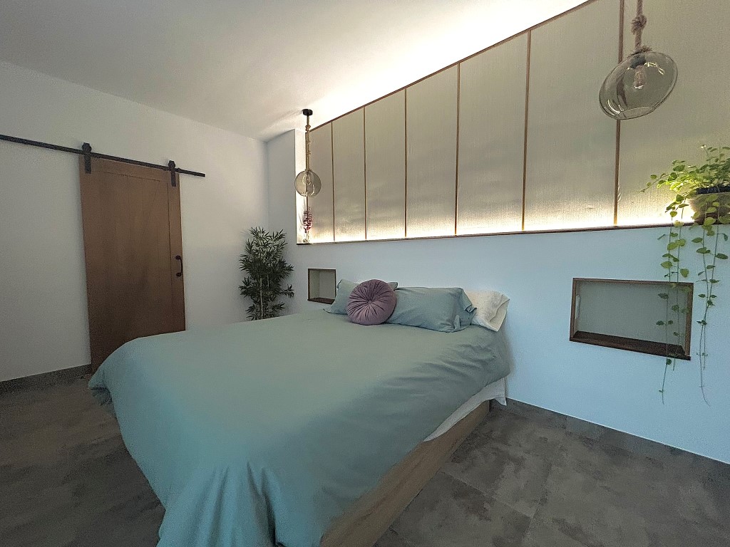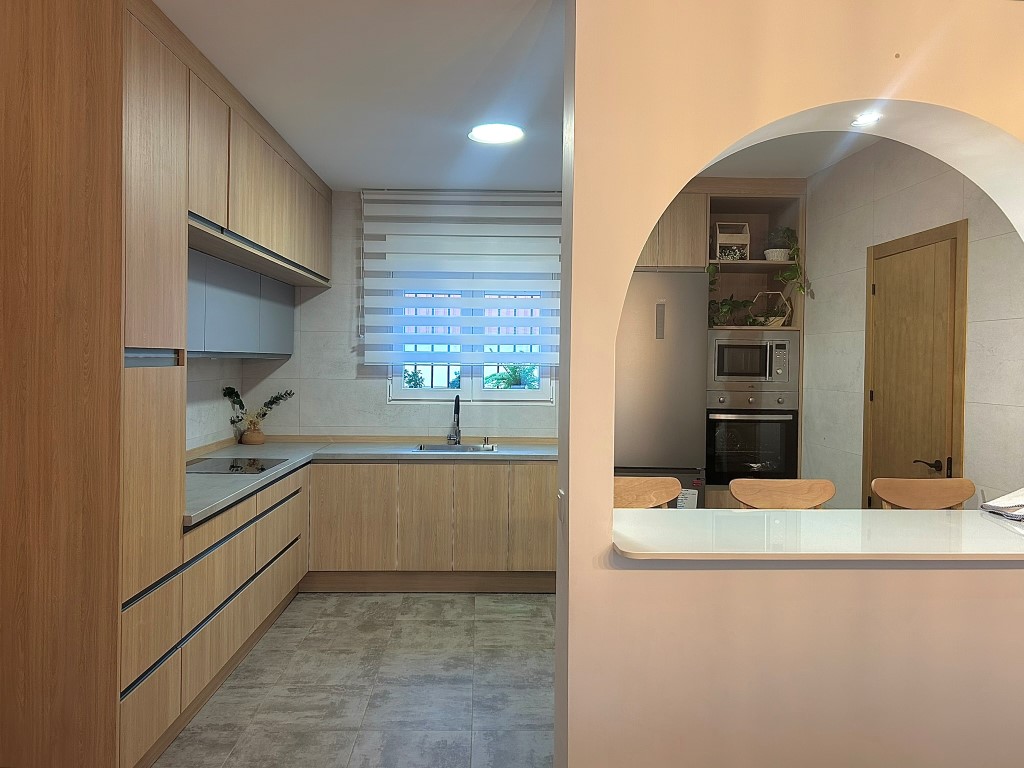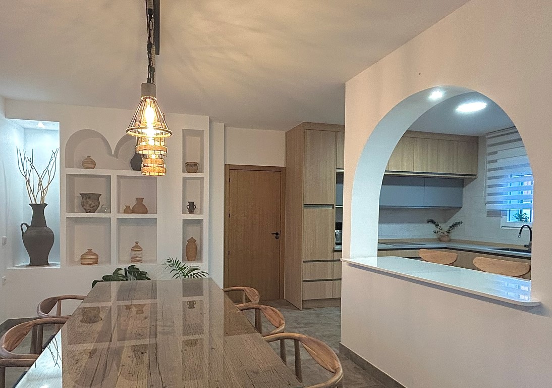 En el interior se ha diseñado la vivienda, continuando con la materialidad de la pureza del blanco, además muy popular en los pueblos de Andalucía, siguiendo un ritmo mediterráneo, a través de arcos limpios y depurados, accesos sin carpintería, y huecos que dejan atravesar miradas tamizadas.