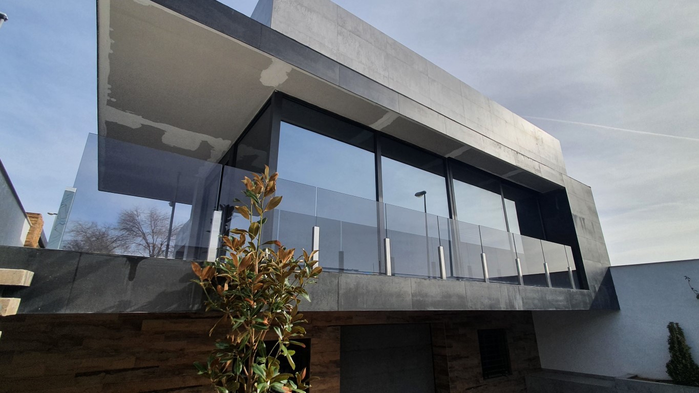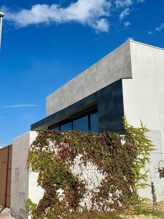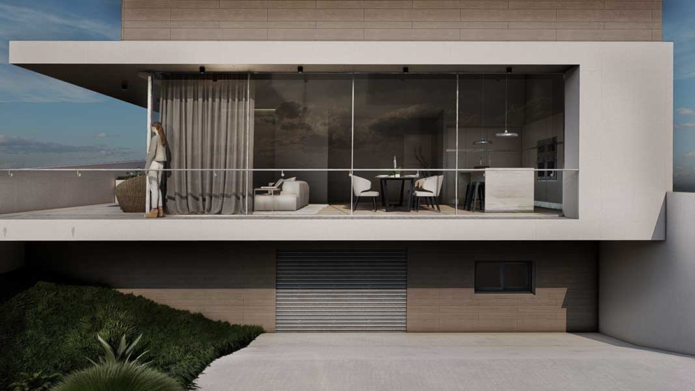 Por un lado, tenemos una pastilla que se inserta en el terreno, la zona de noche, con una morfología, la cual predomina el ancho sobre el alto, para enfatizar, ese anclaje al terreno. Y Por lo contrario, la zona de día es un volumen el cual predomina el alto sobre el ancho, formando y resaltando un imponente voladizo, un mirador hacia la campiña. Se trata de un volumen abierto, acristalado, que permite esa conexión con el exterior.