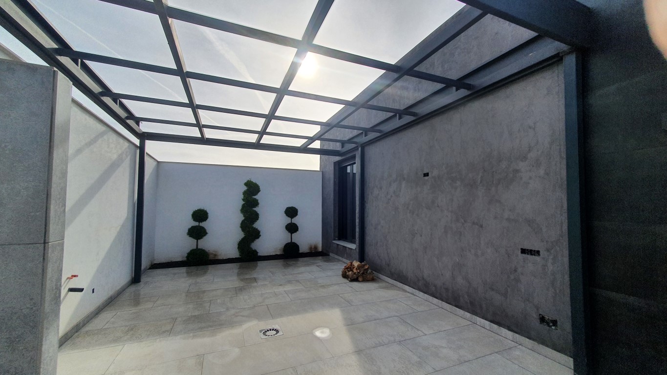 Se inserta una pastilla doble en el centro de la parcela, forzando así a crear un lleno, vivienda, volcado a un vacío, el patio, en todo su alrededor excepto el lindero colindante con la parcela 03. Este volumen es dividido en dos, dos cuerpos maclados, con un diálogo hacia el patio distinto cada uno, materialidades diferentes, una zona de día y una zona de noche, con una morfología distinta, y aun así unidos y abrazados por un elemento horizontal el cuál termina de conformar el puzle, que consigue que encajen ambas piezas.